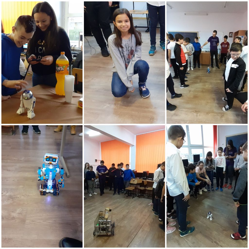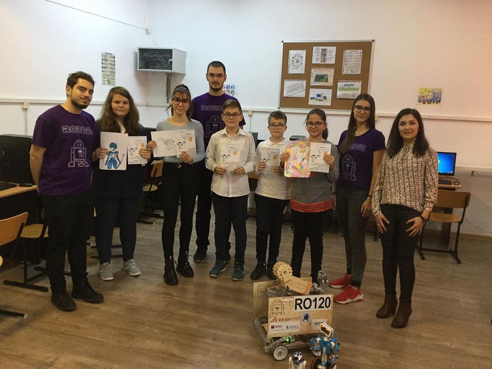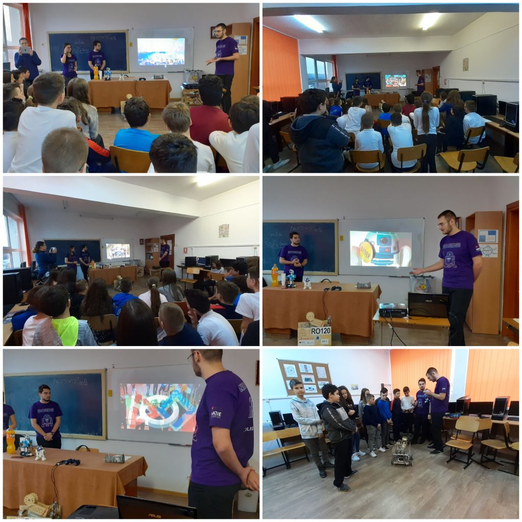 In cadrul acestei activitati, echipa de robotica RO2D2, din cadrul Colegiului National Mihai Viteazul, a prezentat elevilor trei dintre robotii sai, cu care a participat la concursuri nationale si internationale de robotica.