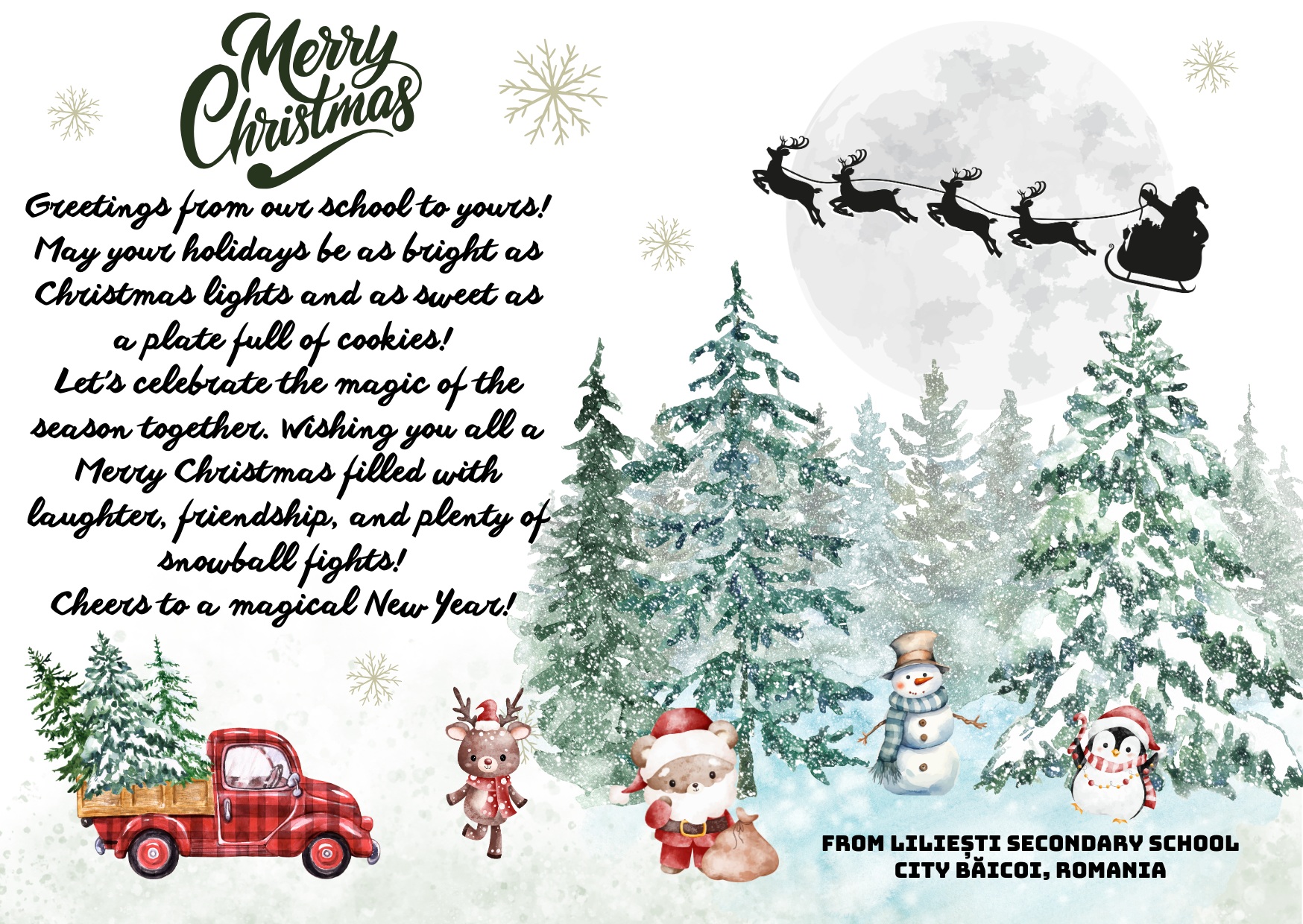 Pe parcursul proiectului, elevii noștri au explorat tradițiile de Crăciun din diferite țări europene, au creat felicitări digitale, au schimbat impresii cu colegi din alte școli și au descoperit atât asemănări culturale, cât și elemente unice fiecărei națiuni. Prin această experiență, și-au dezvoltat abilitățile digitale, lingvistice și interculturale, învățând despre diversitatea și frumusețea sărbătorilor de iarnă în Europa.