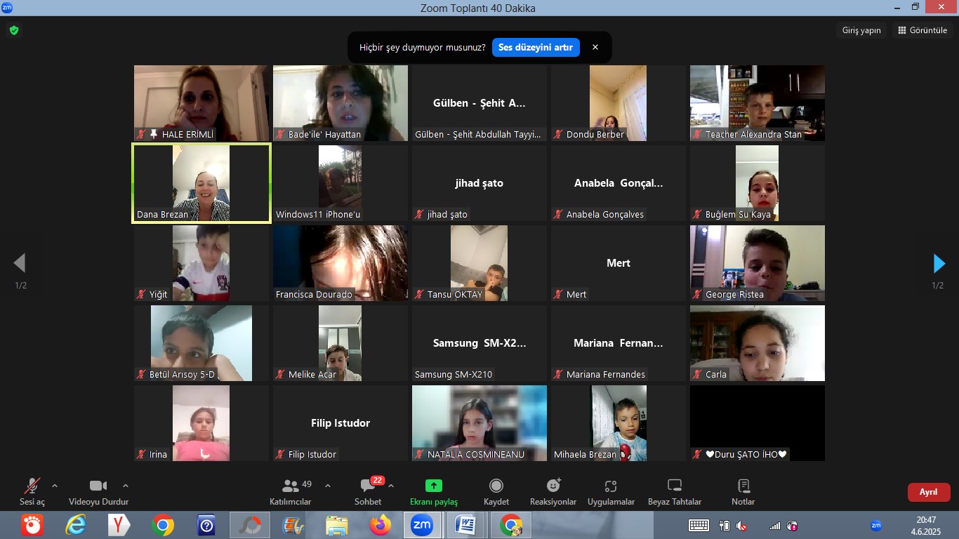 Mulțumesc elevilor clasei a IV-a A, părinților acestora, care s-au implicat activ și partenerilor de proiect, din diverse țări, precum: Croația, Albania, Iordania, Azerbaidjan, Slovenia, Lituania, România etc.!