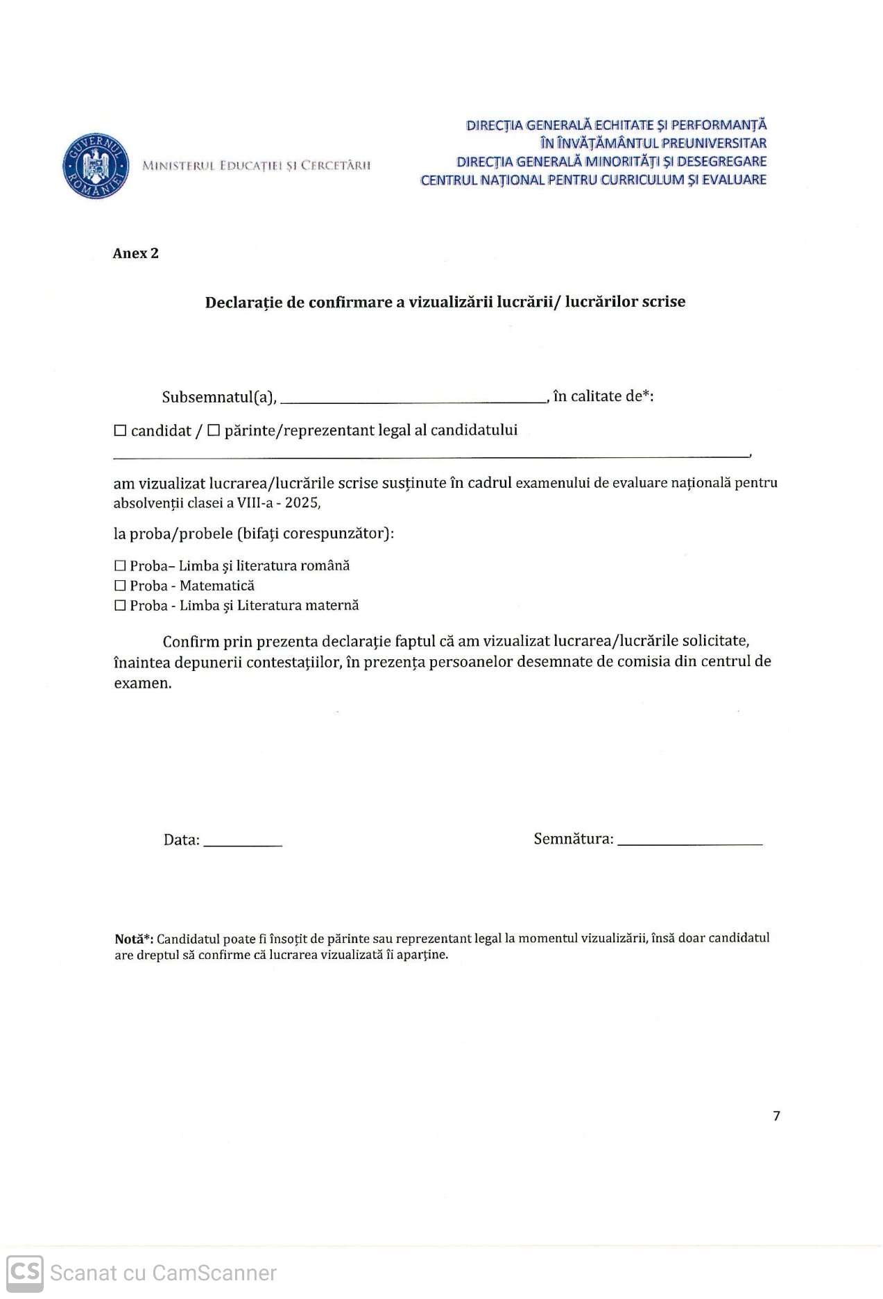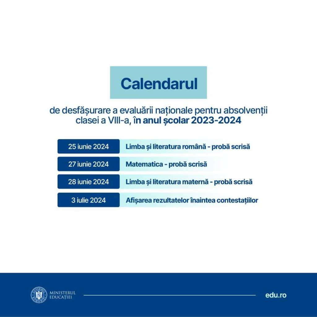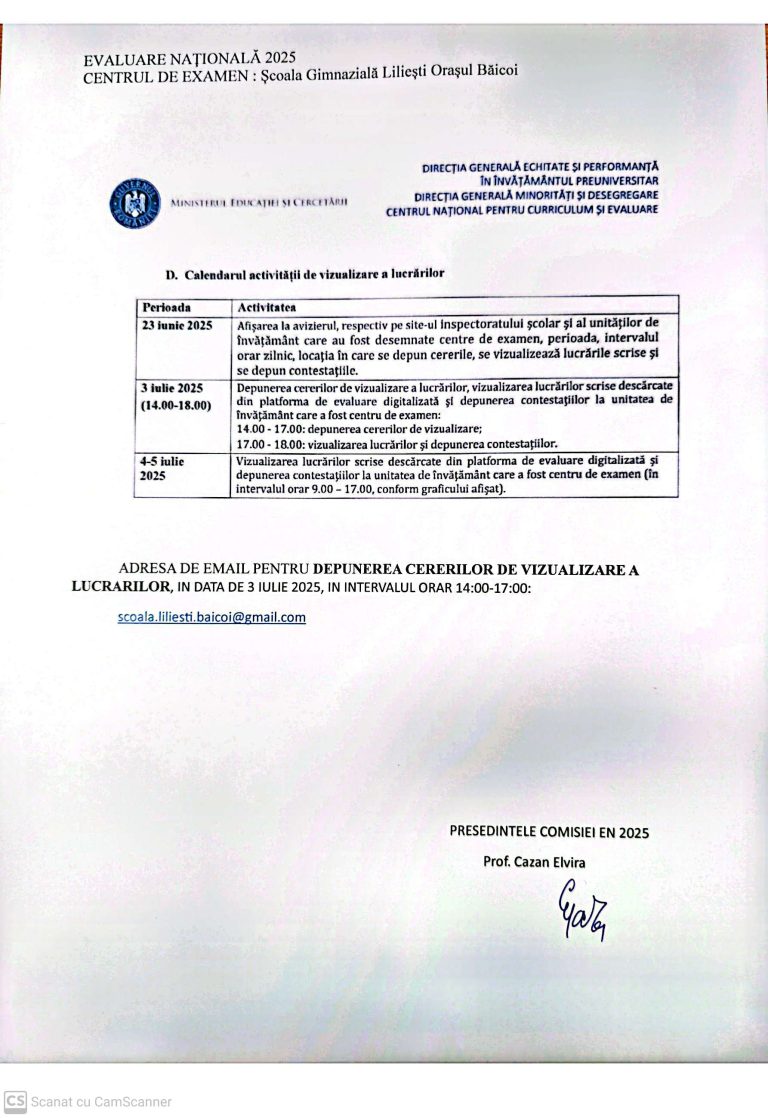 An școlar 2024-2025 Cerere tip de vizualizare a lucrării scrise Declarație de confirmare a vizualizării lucrării Model cerere contestație – Evaluare Națională 2025 Procedură privind vizualizarea lucrărilor redactate la probele din cadrul examenului de Evaluare Națională pentru absolvenții clasei a VIII-a GRAFIC PENTRU PREGĂTIREA SUPLIMENTARĂ CU ELEVII CLASEI A VIII-A PENTRU EVALUAREA NAȚIONALĂ An școlar 2023-2024 GRAFIC PREGĂTIRE REMEDIALĂ LIMBA ȘI LITERATURA ROMÂNĂ CLASA a VIII-a GRAFIC PREGĂTIRE REMEDIALĂ MATEMATICĂ CLASA a VIII-a GRAFIC PENTRU PREGĂTIREA SUPLIMENTARĂ EN Clasele a II-a, a IV-a și a VI-a Ordin privind organizarea și desfășurarea evaluării naționale pentru absolvenții clasei a VIII-a , în anul școlar 2023 – 2024 Ordinul nr. 6.154 privind organizarea și desfășurarea admiterii în învățământul liceal pentru anul școlar 2024 – 2025 An școlar 2021-2022 Graficul pregătirii suplimentare pentru evaluarea națională CALENDARUL ADMITERII ÎN ÎNVĂȚĂMÂNTUL LICEAL pentru anul școlar 2022-2023 CALENDARUL ADMITERII ÎN ÎNVĂȚĂMÂNTUL PROFESIONAL DE STAT pentru anul școlar 2022-2023 Ordinul nr. 5150/30 august 2021 privind organizarea și desfășurarea admiterii în învățământul liceal pentru anul școlar 2022-2023 Ordinul nr. 5149/30 august 2021 privind organizarea și desfășurarea evaluării naționale pentru absolvenții clasei a VIII-a , în anul școlar 2021/2022 ORDIN privind aprobarea Calendarului de administrare a evaluărilor naționale la finalul claselor a II-a, a IV-a și a VI-a în anul școlar 2021—2022 ORDIN nr. 3051/12 ianuarie 2016 privind aprobarea Metodologiei de organizare și desfășurare a evaluărilor naționale la finalul claselor a II-a, a IV-a si a VI-a An școlar 2020-2021 Graficul desfășurării pregătirii suplimentare cu elevii clasei a VIII-a pentru Evaluarea Națională 2021 GHIDUL CANDIDATULUI 2020-2021 Procedură cu privire la asigurarea condițiilor de egalizare a șanselor pentru elevii cu deficiențe de vedere, deficiențe de auz și tulburări de neurodezvoltare care susțin examenele naționale Adresă ISJ cu privire la asigurarea condițiilor de egalizare a șanselor care susțin examenele naționale și cerere către directorul școlii