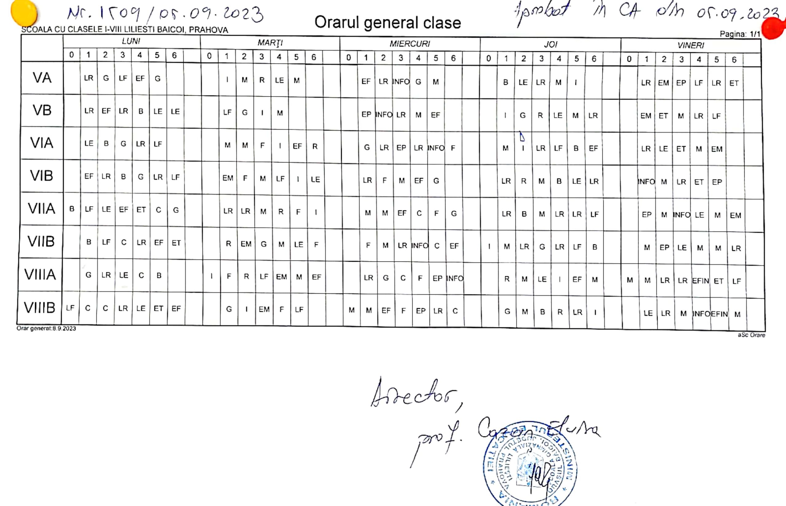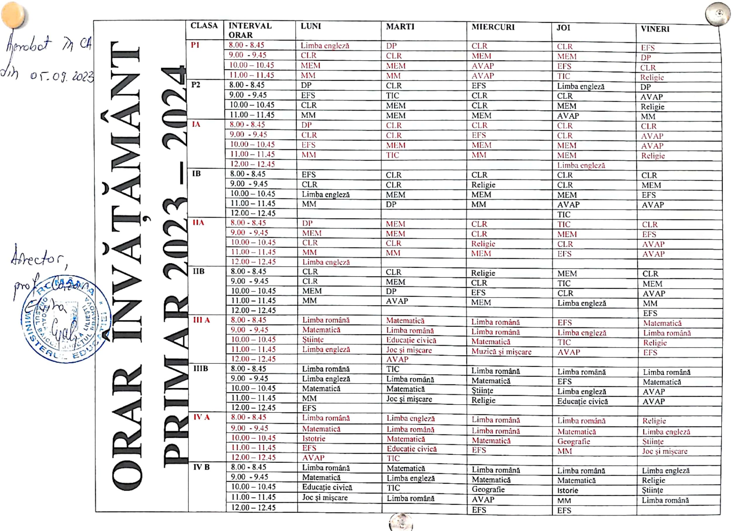 An școlar 2024-2025 Orar învățământ gimnazial Orar ciclul primar An școlar 2023-2024 Orar învățământ gimnazial Orar învățământ primar